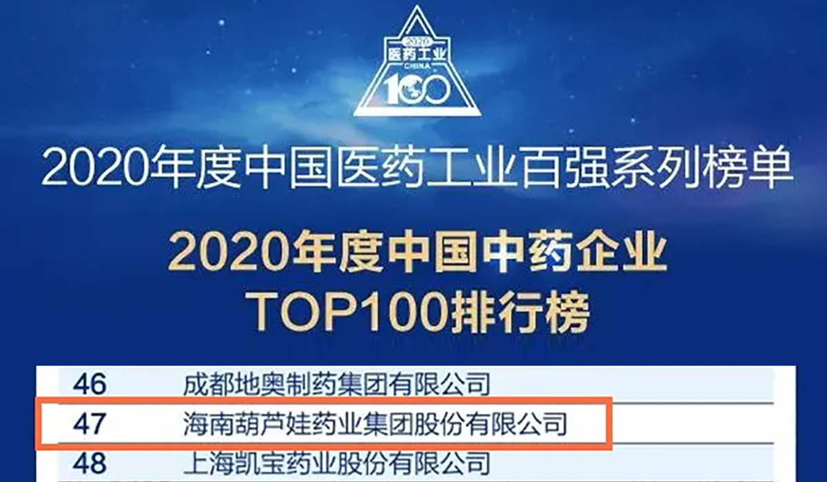 集團榮登“中國中藥企業TOP100排行榜”第47位